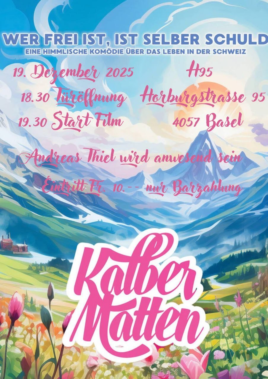 Wann: 19. Dezember 2025 Wo: H95 Raum für Kultur Horburgstrasse 95, 4057 Basel 18:30 Türöffnung 19:30 Start Film Andreas Thiel wird anwesend sein! Eintritt: 10.- (nur Barzahlung) |