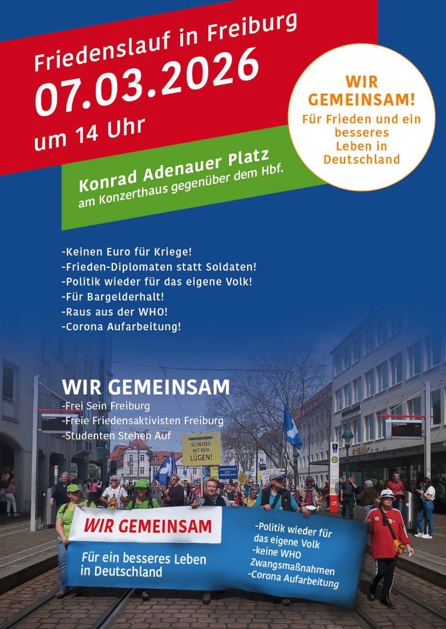 Mar 7 Friedenslauf durch die Innenstadt in Freiburg i. Breisgau 14:00 - 16:00 Freiburg im Breisburg, Innenstadt Konrad Adenauer Platz, Freiburg im Breisgau Evento Details Ottieni indicazioni