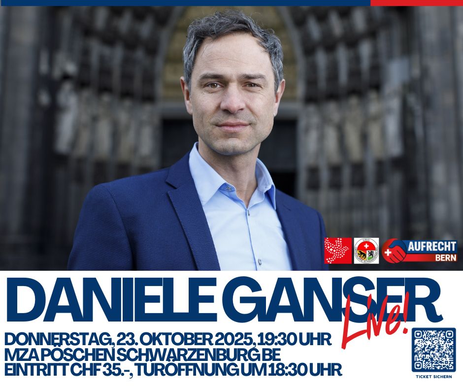 Mehrzweckanlage Pöschen Freiburgstrasse 100, Schwarzenburg, SwitzerlandEXKLUSIV - Daniele Ganser live in Schwarzenburg BE Aufrecht Bern, Freunde der Verfassung Schwarzenburgerland und die Urig Ortsgruppe Schwarzenburg laden Sie herzlich ein zum Wahlkampfauftakt und Vortragsabend mit Dr. Daniele Ganser - dem bekannten Historiker, Friedensforscher und Publizisten - die neuste Vortragsreihe mit allen aktuellen Ereignissen zur , , und Co. sowie dem kritischen Blick […]